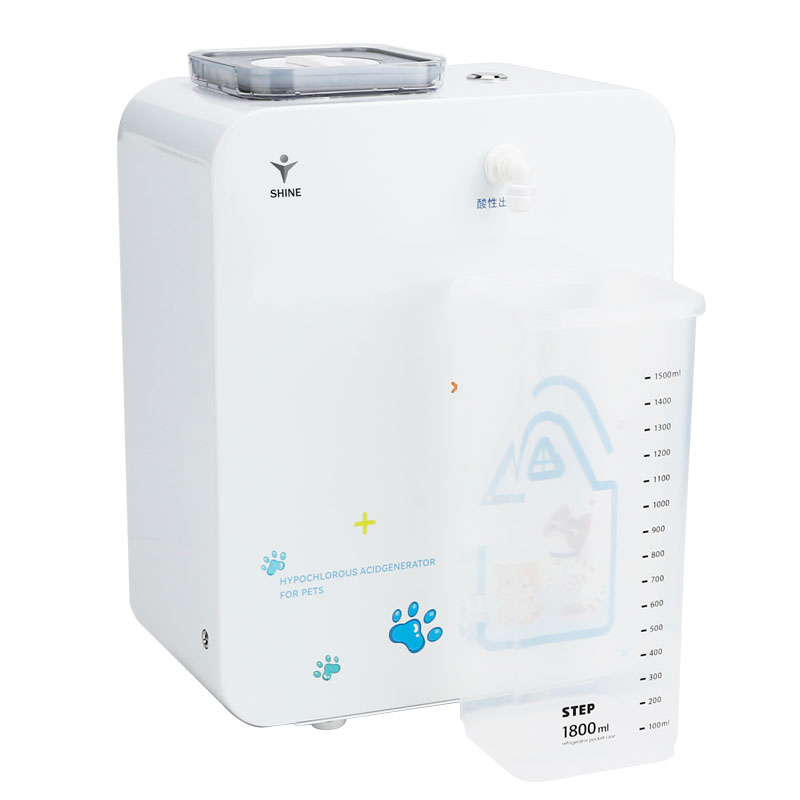 寵物專用款次氯酸發(fā)生器:一鍵出水,操作簡單,智能控制,安全便利,無酒精,無香精,非漂白劑,只需水+食鹽就可以產(chǎn)出優(yōu)質(zhì)的次氯酸水消毒液。殺菌率>99.99%